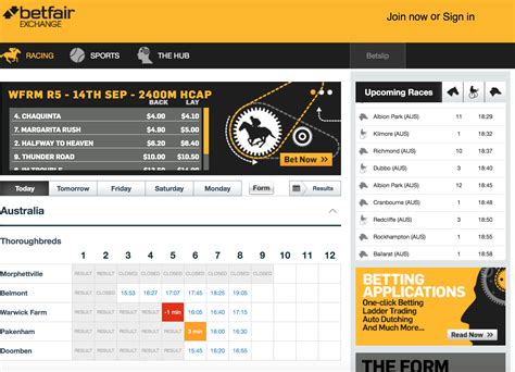 Oceania Access Australia’s only licensed betting exchange with Betfair. Back and lay bets, superior odds, live betting on AFL, NRL, racing and more. Betfair Australia offers a unique peer-to-peer betting … Find better odds on racing and sport on the Betfair app . We're on your side! Imagine what you could be buying instead. For free and confidential support ... Read Customer Service Reviews of www.betfair.com Betfair Login » Betfair Sportsbook & Exchange Account Login Do betfair.com and betfair.com.au generally provide similar ... betting exchange Once you have created an account with Betfair, you will be eligible for our promotions across both Sportsbook and the Exchange, these include free bets, odds boosts and loads more. When you join Betfair you'll eligible for My Betfair Rewards – a rewards program where you can qualify for bonuses. Log in to your account and get access to your favourite betting markets. CC-BY-SA license