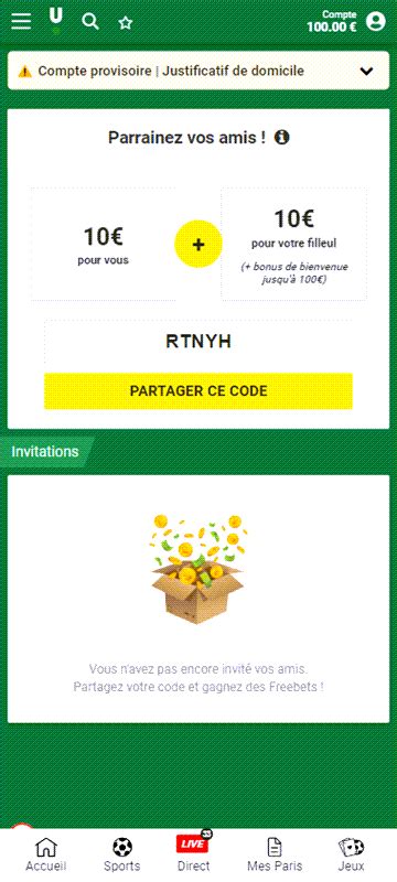 PARRAINAGE : 10€ pour toi et tes potes ! · 1. J'invite mes amis sur Unibet en partageant mon code ! · 2. Le filleul doit renseigner le code parrain lors de la ...