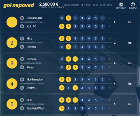 Športna loterija - TOP DOBITKI - Gol napoved - e-stave