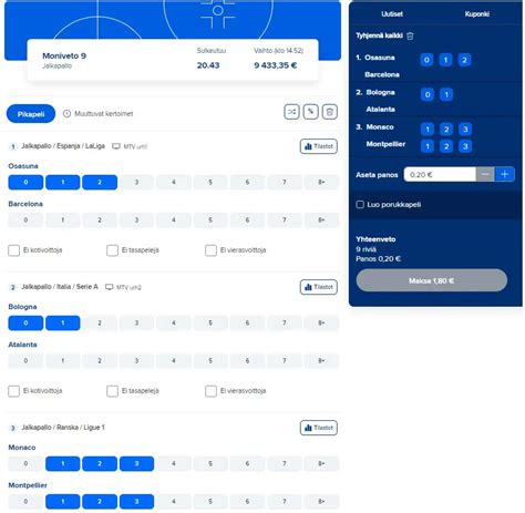 25 Nov 2026 — Moniveto on vedonlyöntipeli, jossa pelaajan tulee veikata valittujen otteluiden tarkat lopputulokset. Yleisimmin moniveto kohteet liittyvät ...